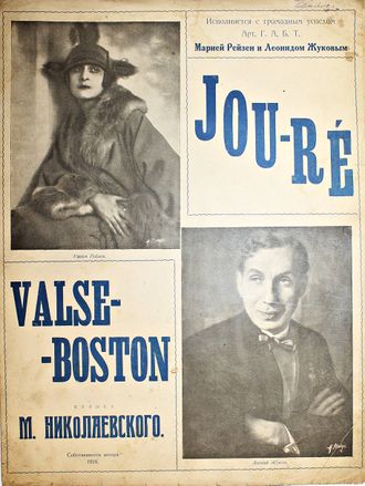 Valse-Boston. Муз. М.Николаевского. Исполняется с громким успехом арт. Г.А.Б.Т. Марией Рейзен и Леонидом Жуковым. М.: Главлит, 1924. – 8 с., нот. Мягкая иллюстрированная обложка. Очень большой формат, 35.5х26.5 см. Тираж 3000 экз. Хорошее состояние.