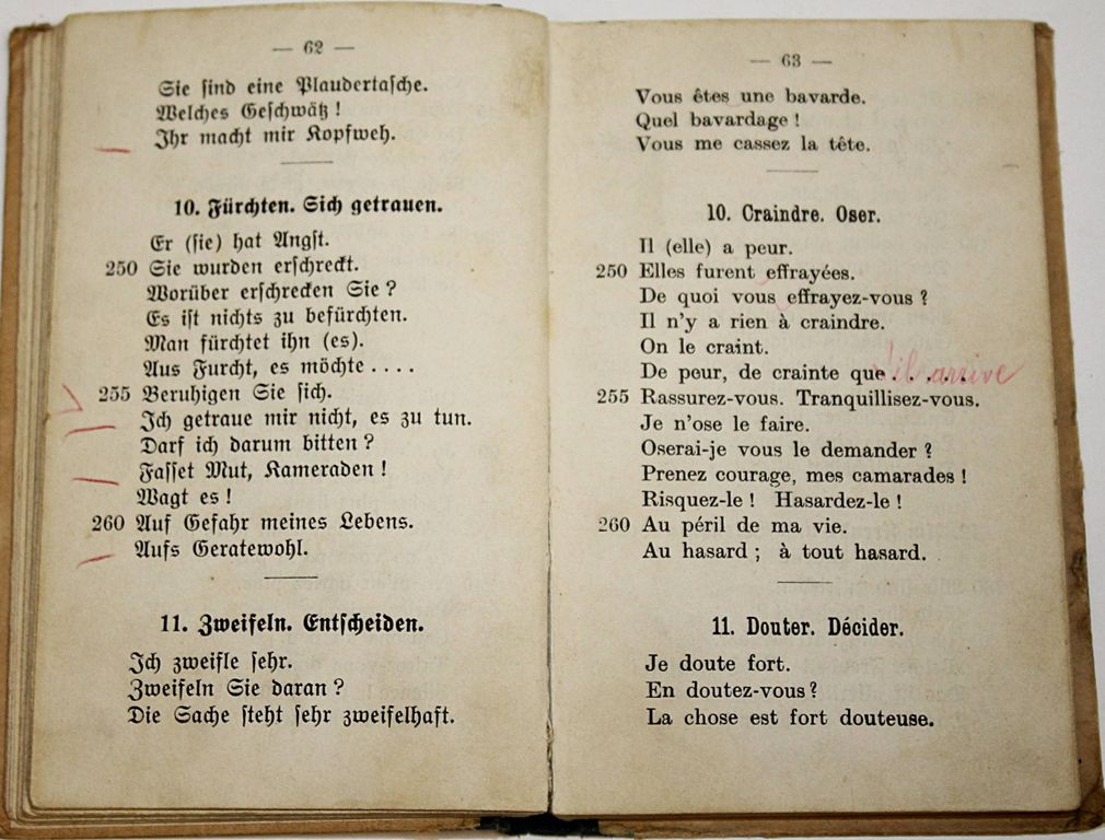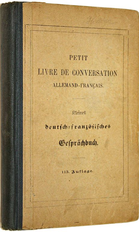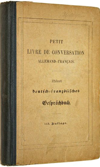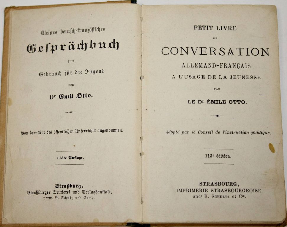 Отто Е. Малый немецко-французский разговорник для молодежи. (Otto Emile, Dr. Petit livre de conversation allemande-francais a l`usage de la jeunesse). Strasbourg: Imprimerie strasbourgeoise, 1875. – 203 с. Твердый переплет. Уменьшенный формат, 14х9.5 см. Хорошее состояние.