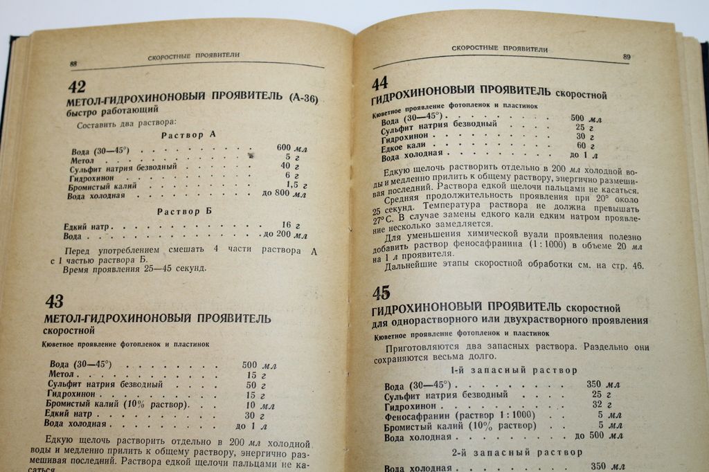 Микулин В.П. Фоторецептурный справочник для фотолюбителей. М.: Искусство. 1958г. 224с. Справочник ставит себе задачей помочь подготовленным фотолюбителям рационально обрабатывать экспонированные светочувствительные материалы. Здесь собраны (в значительной степени из малодоступных большинству читателей источников) и систематизированы рекомендуемые рецепты для лабораторной обработки фотослоев. Справочник не является только сборником рецептов, а начинается сжато изложенными рекомендациями по химико-фотографической технологии, соблюдение которых обеспечивает надежные результаты. Твердый переплет. Увеличенный формат. Хорошее состояние.