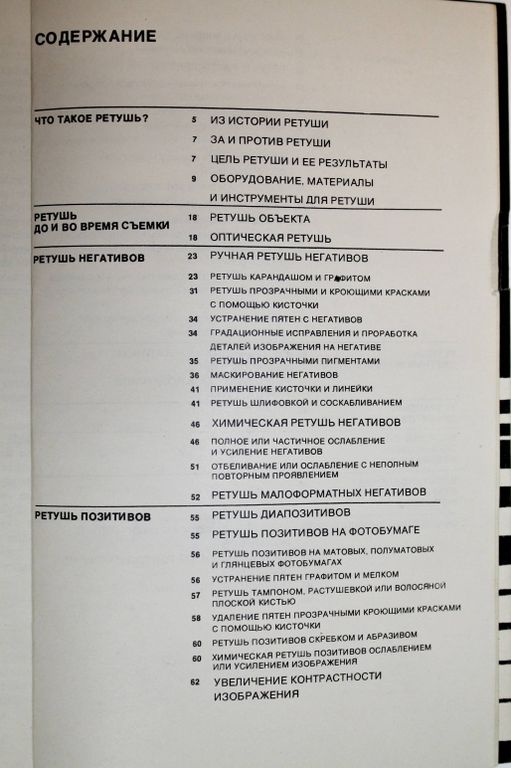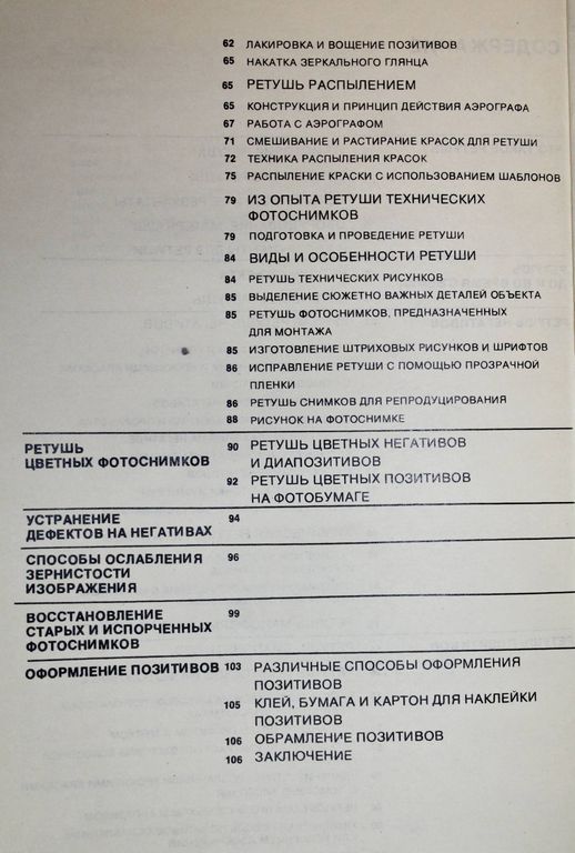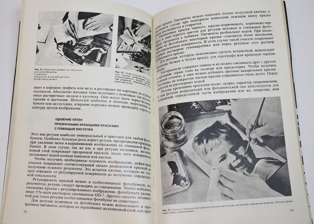 Сюттерлин К. Ретушь - когда и как. М.: Искусство. 1974г. 112 с.,ил. Рассказано о ретуши черно-белых негативов и позитивов. Даны описания приборов, инструментов и материалов, необходимых для ретуши. Подробно рассмотрены все виды ретуши, приемы работы и способы исправления дефектов на негативах, позитивах и диапозитивах. Кроме того, автор рассматривает способы ослабления и усиления, устранения повреждений на негативах, восстановления старых и испорченных негативов. Книга иллюстрирована. Мягкий переплет. Обычный формат. Хорошее состояние.