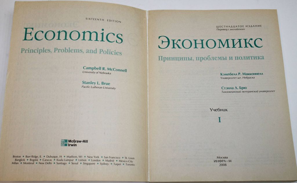 Макконнелл К.Р., Брю С.Л. Экономикс. Принципы, проблемы и политика. В 2-х томах. М.: Инфра- М. 2008. 467с.+514с. Один из наиболее популярных в американских колледжах и университетах учебник, выдержавший 21 издание, был первым подобным учебником, переведенным и напечатанным в России в 1992 г. В большинстве российских экономических вузов он используется в учебном процессе как базовая книга, был рекомендован в этом качестве Министерством науки и высшего образования Российской Федерации для студентов вузов, обучающихся по экономическим специальностям. Учебник посвящен важнейшим проблемам экономике: макро- и микроэкономике, национальному доходу, занятости, кредитно-финансовой и налоговой политике, мировому хозяйству и др. Мягкий переплет. Энциклопедический формат. Хорошее состояние.