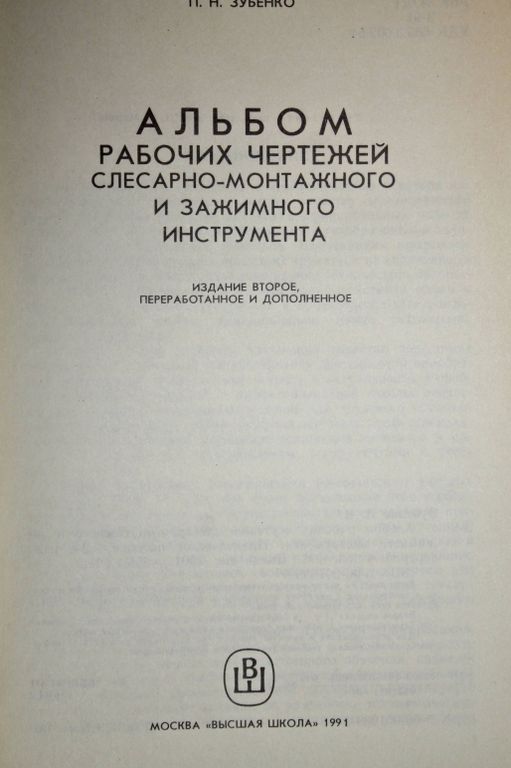 Зубенко П.Н. Альбом рабочих чертежей слесарно-монтажного и зажимного инструмента. М.: Высшая школа. 1991г. 255с.,ил. Даны чертежи инструментов, технические условия, схемы обработки и сборки в соответствии с перечнем инструментов, изготовляемых учащимися ПТУ в процессе производственного обучения. Второе издание дополнено рабочими чертежами слесарных поворотных тисков. Для учащихся и рабочих на производстве. Мягкий переплет. Обычный формат. Очень хорошее состояние.