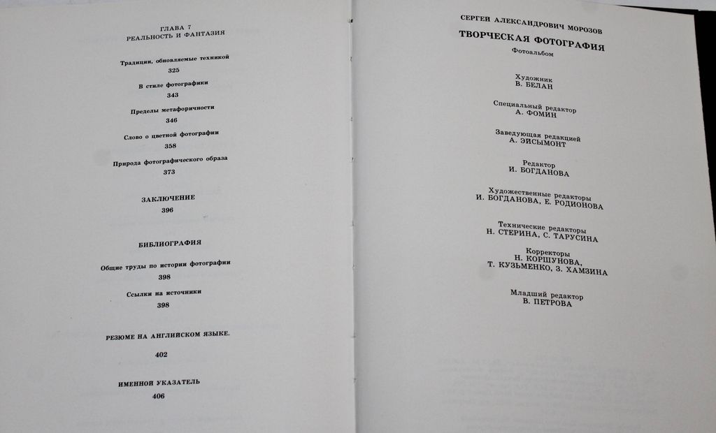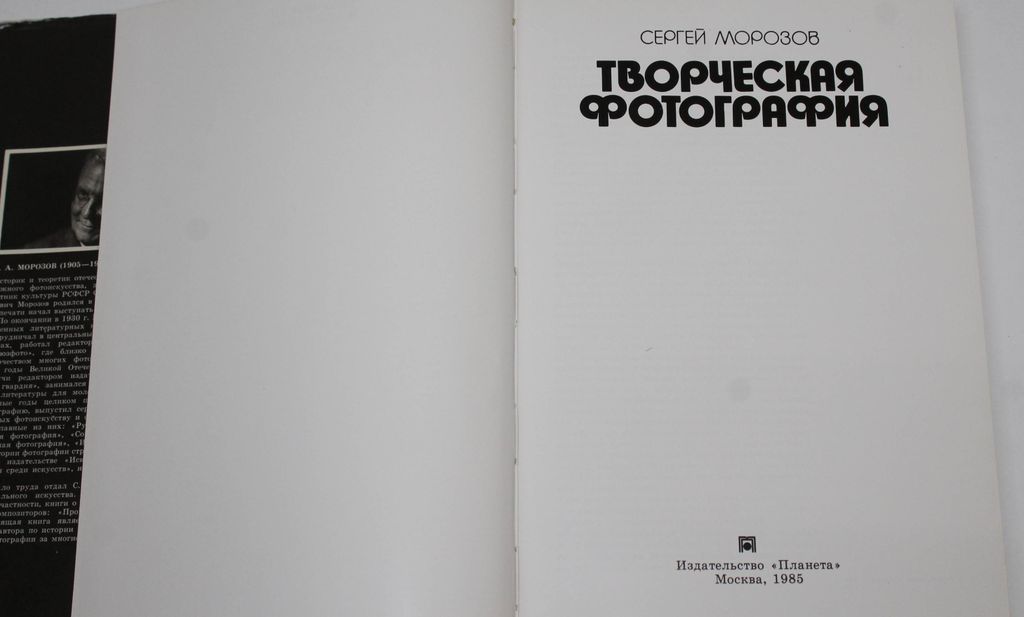 Морозов С. Творческая фотография. М.: Планета. 1985г. 414с.,ил. Настоящая книга является обобщением трудов С.Морозова, известного историка и теоретика отечественного и зарубежного фотоискусства, по истории и теории творческой фотографии за многие годы. В книге много уникальных фотографий. Краткое содержание глав: В культуре XIX-начала XX веков. Ранняя пора. В традициях живописи. На пути к самостоятельности. Новое сближение с живописью и графикой. В ряду современных искусств. Две ветви новаторства. Путь современного реалистического фотоискусства. Реальность и фантазия. Твердый переплет. Суперобложка. Увеличенный формат. Книга- отличное состояние, супер. с неб. дефектами.