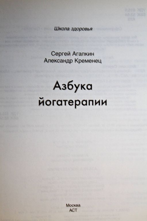 Агапкин С. Азбука йогатерапии. М.: АСТ 2013г. 159с.,ил. В этой книге доктор Агапкин рассказывает о том, как восстановить и укрепить здоровье с помощью йоги. Йога многообразна и бесконечна, как сама жизнь. И каждый, кто практикует йогу, старается найти в ней свой путь, свои приемы очищения и просветления, укрепления здоровья и духовного роста. Прежде чем выбрать свой неповторимый набор асан, необходимо узнать о них как можно больше, чтобы получить максимальную пользу и не пострадать от возможных побочных эффектов. И здесь на помощь приходит книга Сергея Агапкина. На данный момент это самый подробный справочник по асанам, издававшийся на русском языке и составленный нашим отечественным автором. Столь полная подборка материала позволит сориентироваться в сложном мире йогических практик не только опытному преподавателю йога-студии, но и новичку, заинтересовавшемуся этим учением. Твердый переплет. Увеличенный формат. Очень хорошее состояние.