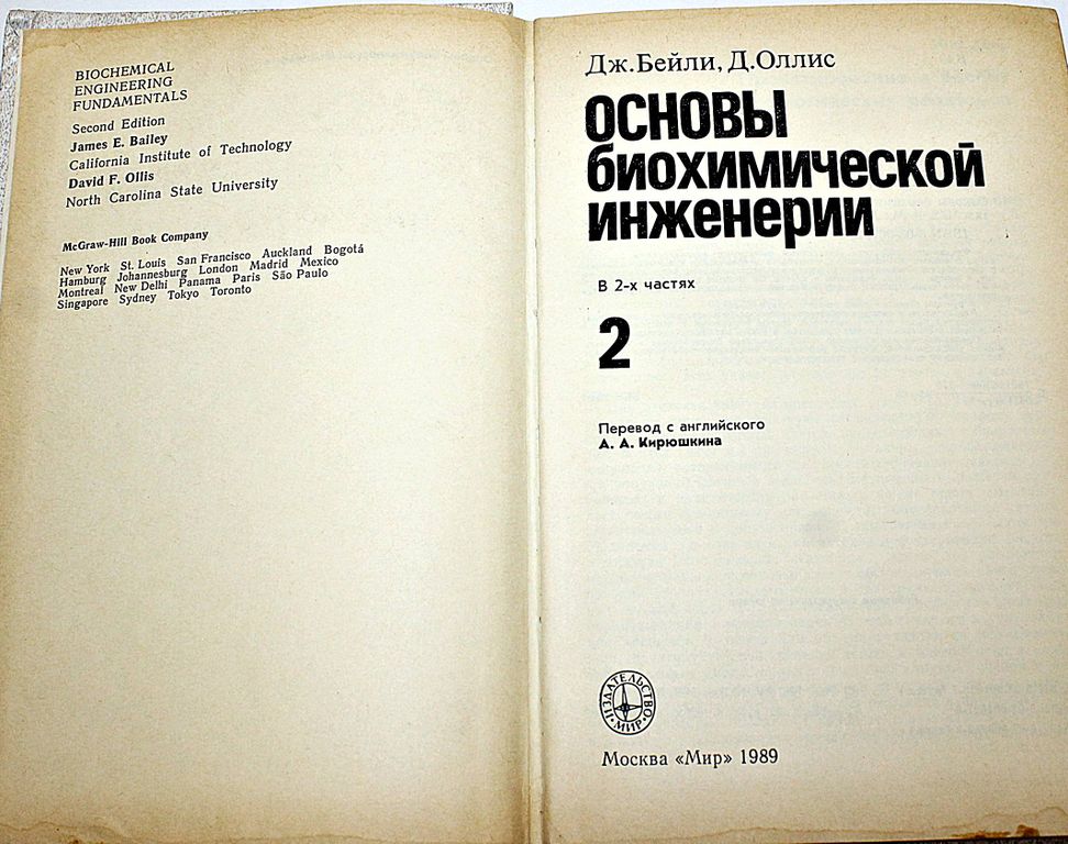 Бейли Дж.,Оллис Д. Основы биохимической инженерии в 2-х частях. Часть 2. Пер. с англ. М. Мир. 1989г. 590 с.,ил. Фундаментальный труд, написанный американскими специалистами в области проектирования, разработки и применения процессов, связанных с переработкой биологических материалов и использованием биологических агентов, в первую очередь ферментов и клеток. Твердый переплет. Увеличенный формат. Хорошее состояние.