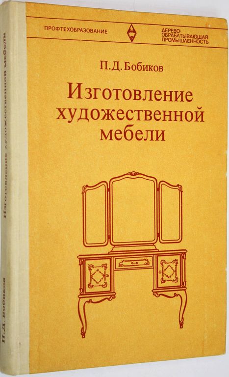 Бобиков П.Д. Изготовление художественной мебели. М.: Высшая школа. 1978г. 256 с.,ил. В книге приведены сведения по обработке древесины и древесных материалов ручным инструментом (разметка, пиление, строгание, долбление, сверление, зачистка) и механическим способом (раскрой, обработка черновых и чистовых заготовок, гнутье). Описаны склеивание, облицовывание, отделка мебели. Рассмотрен технологический процесс изготовления мебели ручным способом в учебных мастерских и механизированным на предприятиях, а также ремонт и реставрация мебели. Твердый переплет. Увеличенный формат. Хорошее состояние.