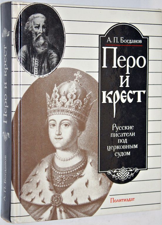 Богданов А.П. Перо и крест. Русские писатели под церковным судом. М.: Политиздат. 1990г. 480с. Корни громких политических процессов над инакомыслящими, имевших идеологическую и назидательную подоплеку, уходят в глубь веков русской истории. Стяжательствующее духовенство и Ван Грозный против монаха-проповедника Артемия, всесильный патриарх Филарет против поэтов князя Ивана Хворостина и Антония Подольского, абсолютный монарх - солнце - Алексей Михайлович с сонмом русских и иноземных православных иерархов против протопопа Аваакума, сверхмощный карательный аппарат петровского государства и мудроборцы во главе с патриархом Иокимом против просветителя Сильвестра Медведева - вот далеко не полный перечень событий и героев книги. Твердый переплет. Обычный формат. Отличное состояние.