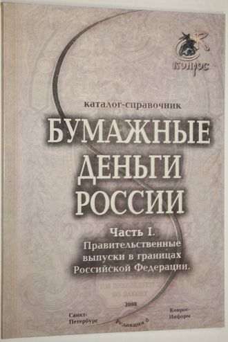 Бумажные деньги России. Каталог-справочник. Часть 1. М.: Конрос-Информ. 2008г. 80с.,ил. В первом выпуске учтены правительственные выпуски в границах Российской Федерации. Мягкий переплет. Обычный формат. Отличное состояние.