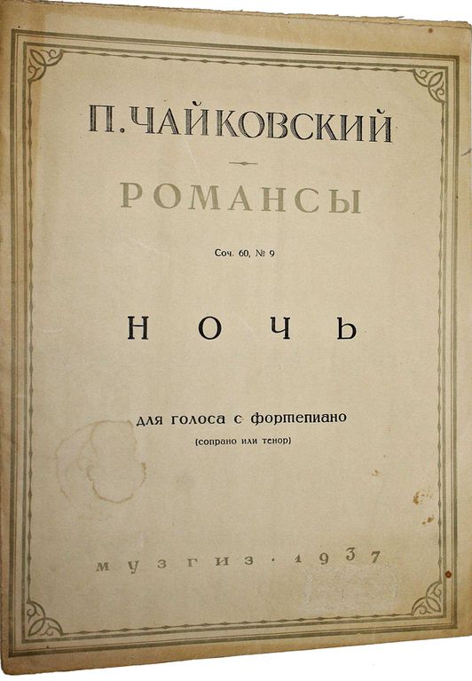 Чайковский П. Романсы: Ночь. М.: Музгиз, 1937. 250 руб. В корзину Описание Описание Чайковский П. Романсы: Ночь. Соч. 60, №9. Слова Я.Полонского. Для голоса с фортепиано (сопрано или тенор). М.: Музгиз, 1937. – 8 с., нот. Очень большой формат. Тираж 5000 экз. Хорошее состояние. Вас также может заинтересоватьВ корзинуДунаевский И. Лунный вальс. Из фильма `Цирк`. Текст В.Лебедева-Кумача. Л.: Музгиз, 1937.900 ₽ В корзинуВ корзинуПесенка Петера. Из фильма Piotrus. Текст В.Михайлова и О.Малятской. Обработка А.Раппопорта. 2-е изд. Л.: Тритон, 1936.300 ₽ В корзинуВ корзинуРазвился летающий мир. Романс-вальс. Пг.: Изд. А.К.Соколова, 1910.300 ₽ В корзину