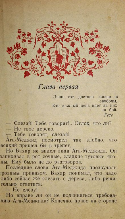 Джалал М. Манифест молодого человека. Повесть. Пер. с азерб. Азиз Шариф. Под ред. Петра Слетова. М: Советский писатель, 1946 . – 196 с. Твердый переплет. Уменьшенный формат, 16х11 см. Мир Джалал (1908 - 1978) — видный азербайджанский писатель, известный ученый-литературовед. В повести `Манифест молодого человека` Мир Джалал показывает формирование гражданского самосознания простого народа в предреволюционные годы. Удовлетворительное состояние. Отсутствует тит. лист, старые библ. отметки.