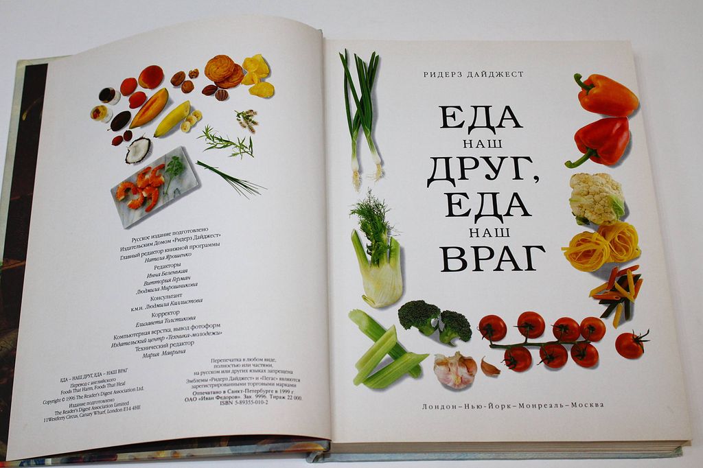 Еда наш друг, еда наш враг. Азбука здорового питания. ИД Ридерз Дайджест 1999г. 400с.,ил. Известно, что даже незначительные перемены в привычной структуре питания могут оказать либо благотворное, либо пагубное воздействие на здоровье. Книга `Еда - наш друг, еда - наш враг` объясняет как это происходит. Опираясь на опыт более чем 300 экспертов в области питания, а также на достижения современной медицины, книга предлагает простое, но авторитетное руководство по питанию, дает практические советы, как хранить и улучшить здоровье, а также объясняет, каким образом сбалансировать свой рацион. Статьи в этом справочнике расположены в алфавитном поряке, поэтому пользоваться им очень удобно. Твердый переплет. Энциклопедический формат. Хорошее состояние. Дарствен. надпись.