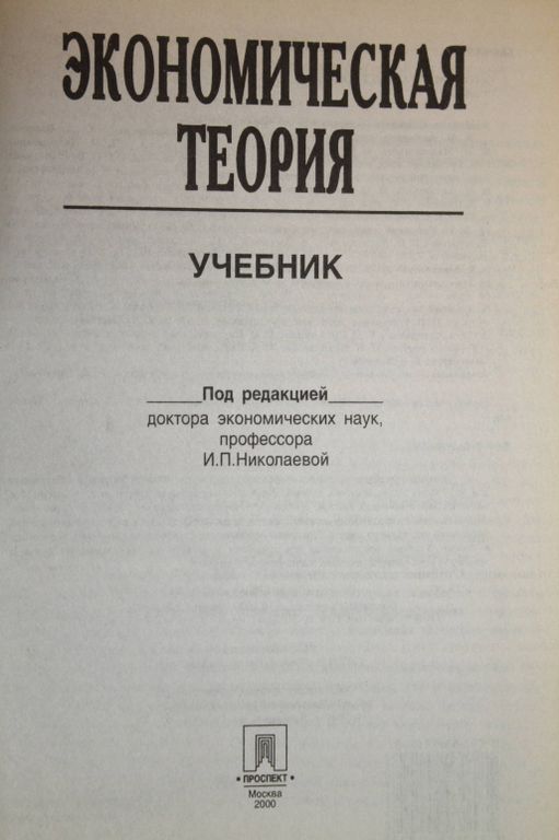 Экономическая теория. Под ред. проф. И.П. Николаевой. М.: Проспект. 2000. 448с. Настоящий учебник подготовлен с учетом требований федеральных государственных образовательных стандартов подготовки бакалавров по направлениям «Экономика» и «Менеджмент». Рассмотрены основные экономические категории и законы экономического развития, особенности микроэкономического анализа, закономерности развития макроэкономических процессов. Особое внимание уделяется рассмотрению движущих сил развития рынка, внешним эффектам, поддержанию общего экономического равновесия и темпов экономического роста. Для студентов бакалавриата, аспирантов и преподавателей вузов, техникумов, колледжей. Твердый переплет. Увеличенный формат. Отличное состояние.