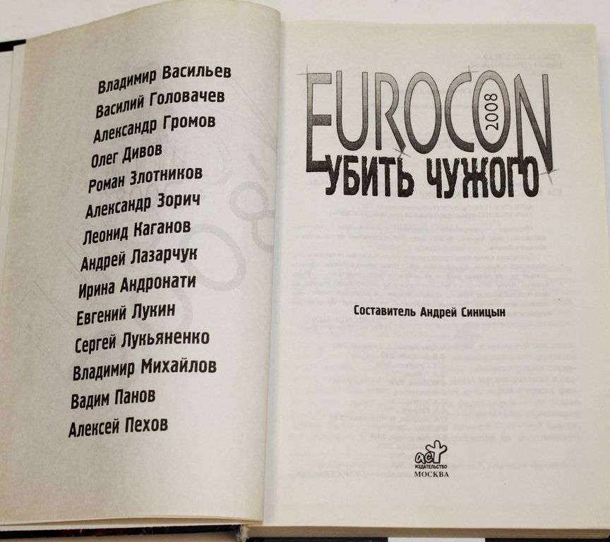 Еврокон 2008. Убить чужого. Сборник. М.: АСТ. 2008г. 478 с. Еврокон` - традиционная конференция профессионалов и любителей фантастики всей Европы. В 2008 году этот престижный форум впервые пройдет в России. Тринадцать самых популярных русских фантастов приняли предложение участвовать в проекте, посвященном этому уникальному событию. Сначала каждый из них написал рассказ на любимую читателями тему - `Убить чужого`. После чего создал отповедь одному из ксенофобских текстов, со всей толерантностью пытаясь `Спасти чужого`. В результате творческого соревнования авторов появился двухтомник, одну из книг которого мы предлагаем вашему вниманию. Твердый переплет. Увеличенный формат. Очень хорошее состояние.