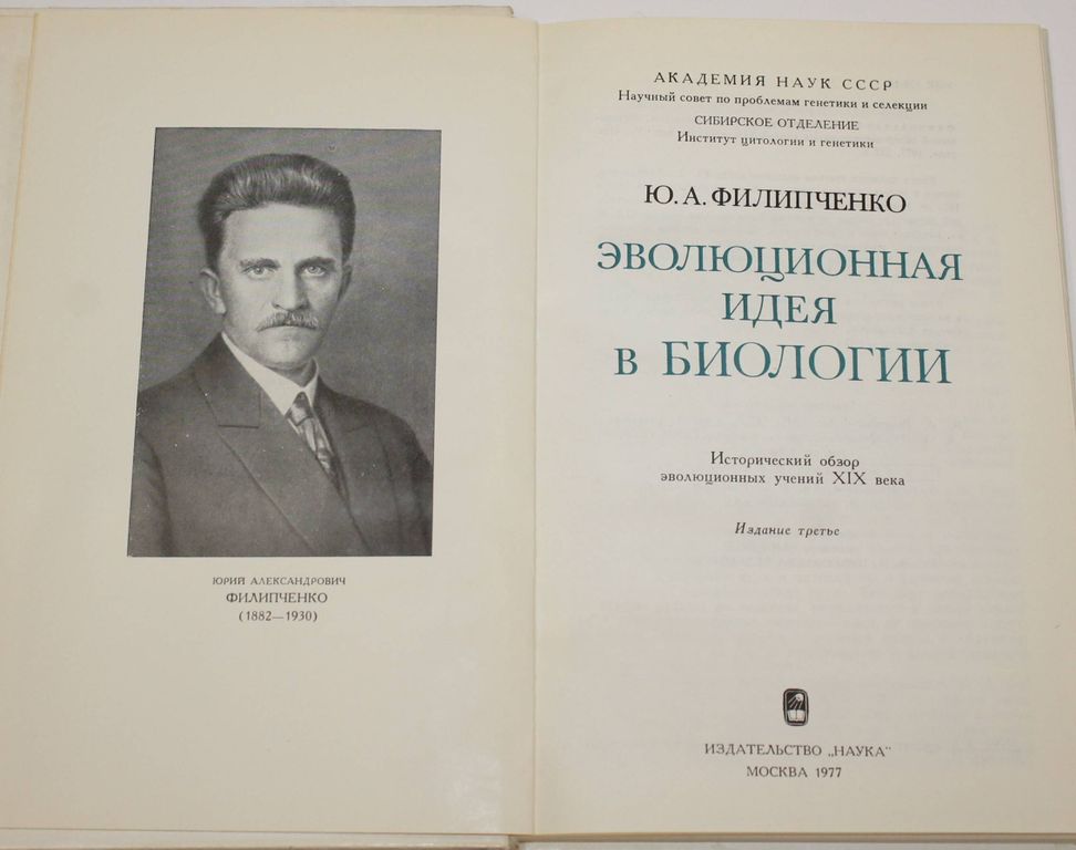 Филипченко Ю. Эволюционная идея в биологии. М.: Наука. 1977г. 226с. Книга представляет собой уникальную в отечественной литературе сводку по истории эволюционных учений XIX века, написана живо и увлекательно, на основе анализа огромного фактического материала классиков биологии. В заключительной главе книги рассмотрены труды представителей русской эволюционной мысли XX века (А. Н. Северцов, Л. С. Берг, Д. Н. Соболев). Твердый переплет. Увеличенный формат. Хорошее состояние.
