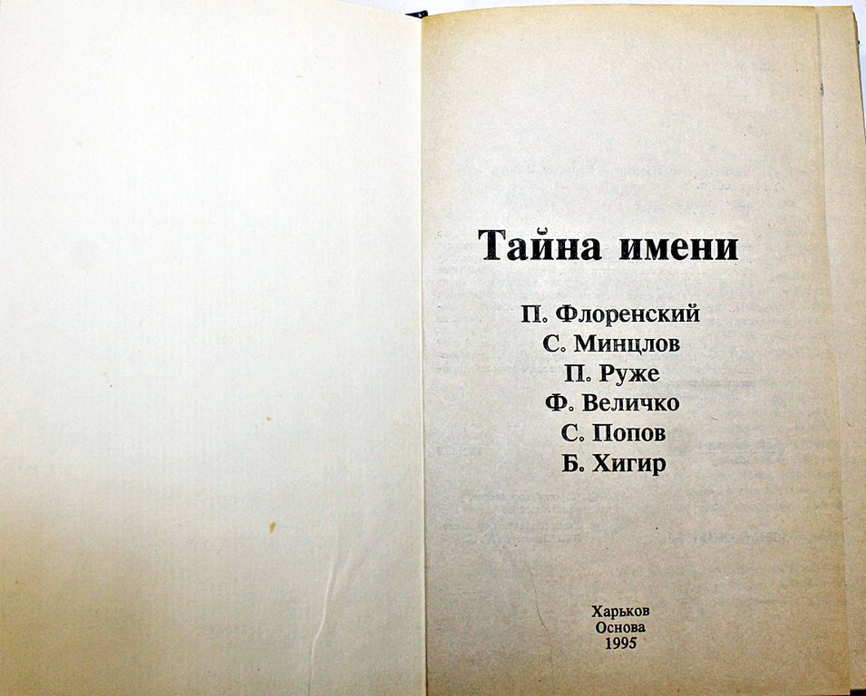 Флоренский П., Минцлов С., Руже П.,Величко Ф., Попов С., Хигир Б. Тайна имени. Сборник. Харьков: Основа. 1994г. 608с. Между именем, данным человеку при рождении, его характером и дальнейшей судьбой существует удивительная, незримая связь - эта загадка волнует и современного человека. В книге сделана попытка собрать наиболее интересное, что было написано до сих пор на эту тему. Твердый переплет. Увеличенный формат. Хорошее состояние.