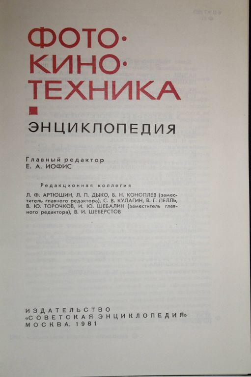 Фотокинотехника. Энциклопедия. Гл.ред. Е.А.Иофис. М.: Советская энциклопедия. 1981г. 447с., ил. Энциклопедия ``Фотокинотехника`` знакомит читателей с наиболее известными моделями советской съемочной и проекционной аппаратуры, приемами фото- и киносъемки, важнейшими изобразительными средствами фотографии и кино, основными химико-фотографическими процессами. В книге в популярной форме изложены основы фотографии, а также содержаться сведения о ее истории и развитии. Книга рассчитана главным образом на фото- и кинолюбителей, она может быть полезной и специалистам, которым в своей работе приходится использовать технические средства фотографии и кино. Твердый переплет. Увеличенный формат. Очень хорошее состояние.