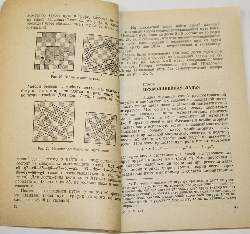 Гик Е.Я. Шахматы и математика. М.: Наука. 1983г. 176с. В книге математика, кандидата технических наук и мастера по шахматам Е.Я.Гика рассказывается о различных связях между шахматами и математикой. Рассматриваются многие типы математических задач и головоломок на шахматной доске; описываются математические игры на шахматной доске; дается математическое освещение таких шахматных аспектов, как составление турнирных расписаний, вычисление рейтингов, геометрические свойства доски. Мягкий переплет. Обычный формат. Хорошее состояние.