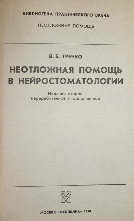 Гречко В.Е. Неотложная помощь в нейростоматологии. Серия: Библиотека практического врача. М.: Медицина. 1990г. 256с. В книге изложены принципы оказания неотложной и специализированной помощи при заболеваниях и синдромах, находящихся на границе двух медицинских дисциплин — неврологии и стоматологии. Описаны все практически значимые острые состояния у больных с нейростоматологическими симптомокомплексами при поражениях систем черепных нервов, вегетативного отдела нервной системы, при нарушениях двигательных систем челюстно-лицевой области, заболеваниях зубочелюстной системы, болезнях внутренних органов и систем организма, а также при неврозах. Дана классификация нейростоматологических заболеваний и синдромов, основанная на анатомо-функциональном принципе, удовлетворяющая требованиям практической медицины. Все разделы работы представлены согласно этой классификации. Уделено внимание изложению особенностей клинических проявлений и принципов дифференциальной диагностики ряда нейростоматологических заболеваний и синдромов, распознавание которых связано во врачебной практике со значительными трудностями. Книга рассчитана на невропатологов, стоматологов. В книге 1 табл., библиография—42 названия Твердый переплет. Обычный формат. Хорошее состояние.