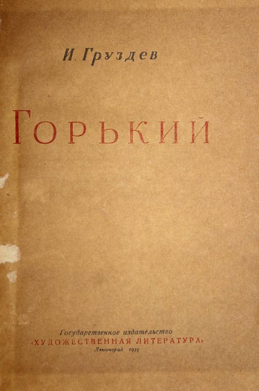 Груздев И. Горький. Л.: Художественная литература, 1938. – 116 с., 1л. портр. Твердый переплет. Уменьшенный формат, 18х14 см. Эта биографическая работа была написана для последнего (25-ти томного) собрания сочинений М.Горького. В настоящем издании она пересмотрена и дополнена главой, написанной после кончины Алексея Максимовича. Хорошее состояние.