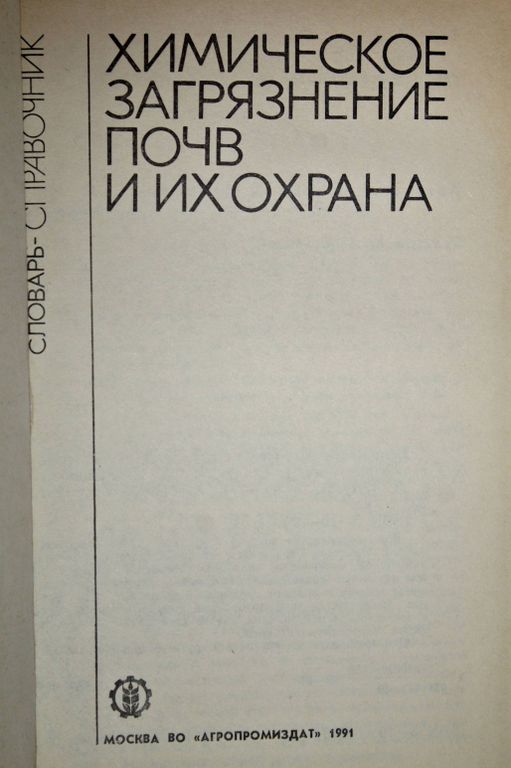Орлов Д.С., Малинина М.С., Мотузова Г.В. и др. Химическое загрязнение почв и их охрана. Словарь-справочник. М.: Агропромиздат. 1991г. 303 с. Даны определения понятий и краткие справочные сведения по проблемам охраны почв от химического загрязнения, химической мелиорации, экологии. Приведены количественные содержания химических загрязняющих веществ в почве и понятия, связанные с почвенным мониторингом. Твердый переплет. Обычный формат. Очень хорошее состояние.