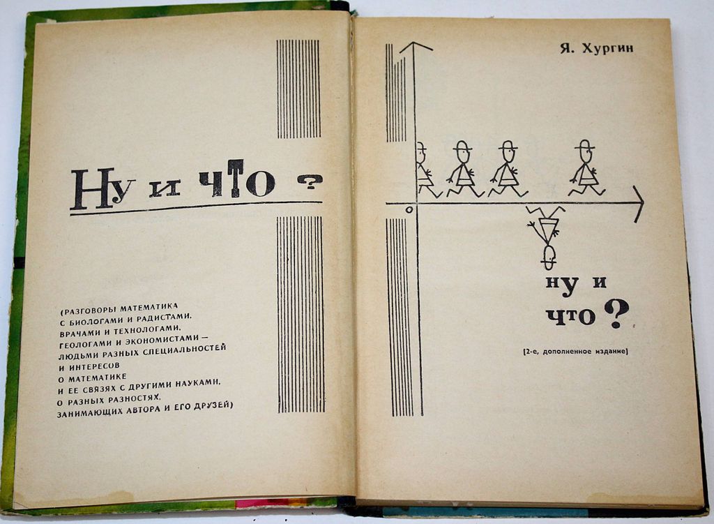 Хургин Я. Ну и что? Серия: Эврика. М.: Молодая гвардия. 1970г. 320 с.,ил. Разговоры математика с биологами и радистами, врачами и технологами, геологами и экономистами - людьми разных специальностей и интересов о математике и ее связях с другими науками, о разных разностях, занимающих автора и его друзей. Твердый переплет. Обычный формат. Хорошее состояние.