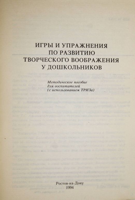 Игры и упражнения по развитию творческого воображения у дошкольников. Ростов-на-Дону. 1994 150 руб. В корзину Описание Описание Игры и упражнения по развитию творческого воображения у дошкольников. Ростов-на-Дону. 1994. 61с.,ил. Мягкий переплет. Обычный формат. Хорошее состояние, загряхзнения.