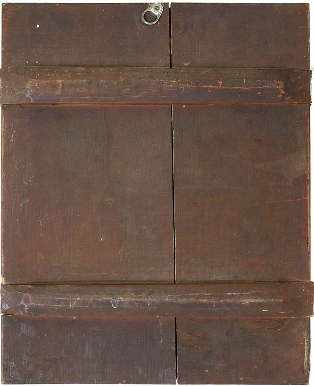 Икона `Святой Иоанн Предтеча`. Россия. Дерево, темпера, левкас, золочение. Сквозные шпонки. Размер: 52х42 см. Вторая половина XIX века. Хорошее состояние. Незначительные следы бытования, трещина на тыльной стороне доски.