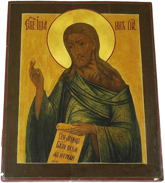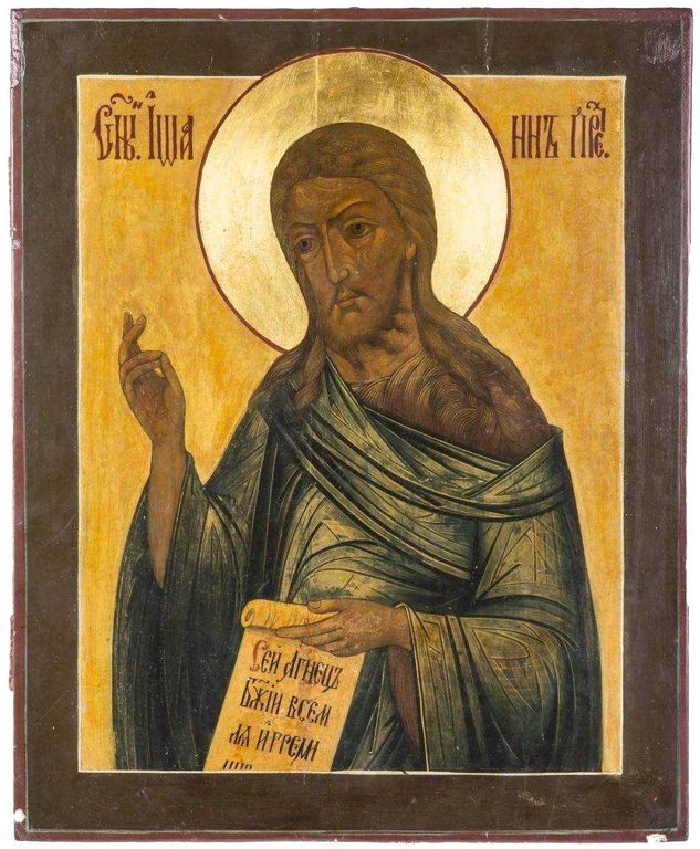 После Девы Марии самый чтимый святой. Согласно Евангелиям: ближайший предшественник Иисуса Христа, предсказавший пришествие Мессии, жил в пустыне аскетом, проповедовал и совершал священные омовения/окунания для очищения от грехов и покаяния иудеев, которые впоследствии стали называться таинством крещения, омывал (крестил) в водах реки Иордан Иисуса Христа, окунув его в воду. Был обезглавлен по желанию иудейской царицы Иродиады и ее дочери Саломеи. Считается исторической фигурой; его упоминание во всех известных рукописях `Иудейских древностей` Иосифа Флавия считается большинством исследователей аутентичным текстом, а не позднейшей вставкой переписчиков-христиан.