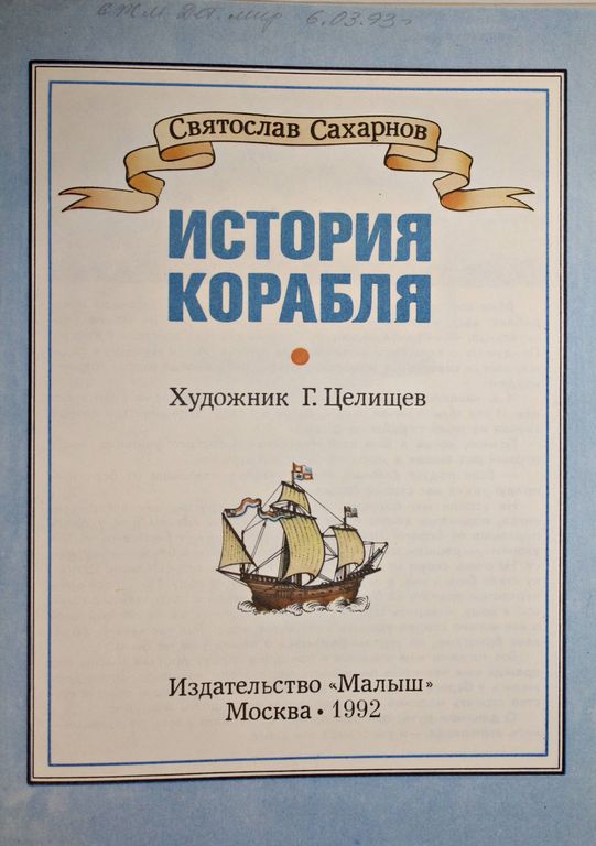 Сахарнов С. История корабля. Художник Г.Целищев. М.: Малыш. 1992г. 124с.,ил. Известный писатель увлекательно расскаывает о длинном пути, который пролег от первого плота до современного атомохода. Многочисленные подробные цветные рисунки и фотографии представляют все многообразие судов и их оснащение на протяжении тысячелетий. Твердый переплет. Энциклопедический формат. Хорошее состояние.