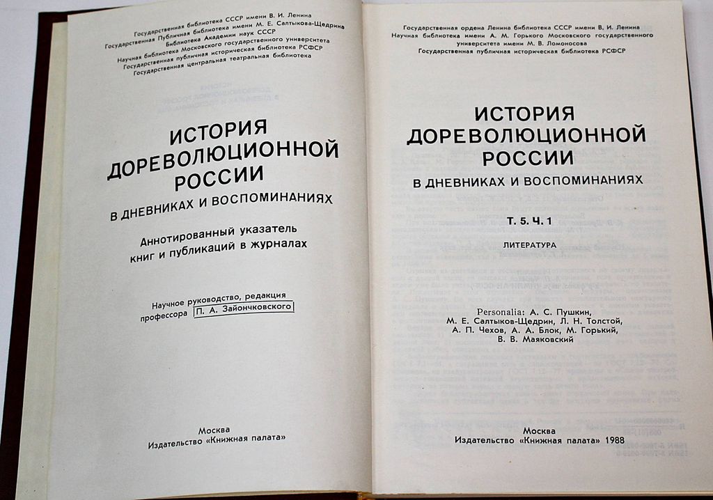 История дореволюционной России в дневниках и воспоминаниях. Аннотированный указатель книг и публикаций в журналах. Литература. Том 5, часть 1. М.: Книжная палата. 1988г. 340с. Литература. Personalia: А.С. Пушкин, М.Е. Салтыков-Щедрин, Л.Н. Толстой, А.П. Чехов, А.А. Блок, М. Горький, В.В. Маяковский. Твердый переплет. Увеличенный формат. Хорошее состояние.