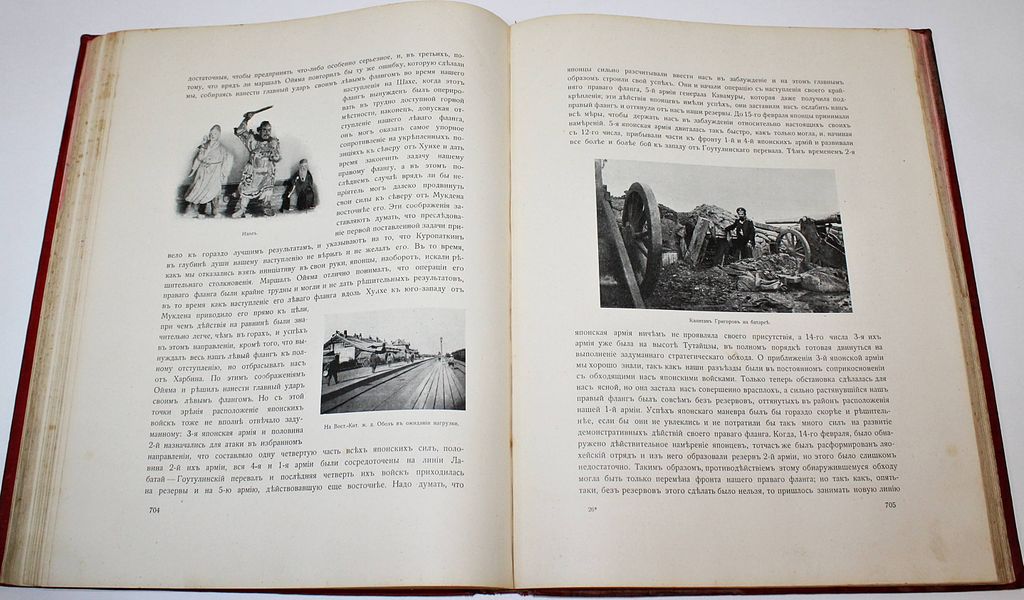 История Русско-Японской войны. [в 6 т.]. Том 3. Полная иллюстрированная история. Редакторы-издатели М.Е.Бархатов, В.В.Функе. СПб.: Тип. Р.Голике и А.Вильбор, [1907]. – [2], 503-800 с., ил. В коленкоровом иллюстрированном издательском переплете. Очень большой формат, 34х26.5 см. Фундаментальный труд М.Е. Бархатова и В.В. Функе, выпущенный в свет вскоре после окончания русско-японской войны. Авторы опирались как на официальные документы, так и на воспоминания непосредственных участников войны, устные предания. В издании впервые приводятся систематизированные статистические данные о русско-японской войне. Труд является важной вехой в развитии историографии русско-японской кампании 1904-1905 гг. Удовлетворительное состояние. Потертости переплета, реставрация корешка, утрата тит. листа, `мытые` отметки, загрязнения отдельных страниц от перелистывания.