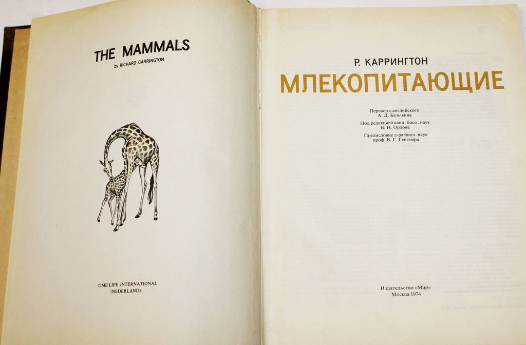 Каррингтон Р. Млекопитающие. М.:. Мир. 1974г. 192 с., ил. Известный английский зоолог Ричард Kаррингтон просто и доходчиво рассказывает непосвященному читателю о млекопитающих: о многообразии их форм, об их эволюции, о питании и способах передвижения, об их странствиях и семейной жизни. Книга великолепно иллюстрирована множеством превосходных фотографий, рисунков и наглядных схем. Ее с интересом прочтет всякий, интересующийся жизнью животных,—от любознательного школьника до специалиста-зоолога. Твердый переплет. Энциклопедический формат. Хорошее состояние.