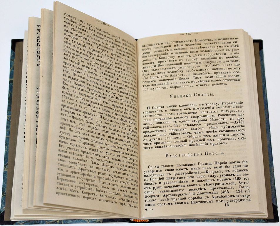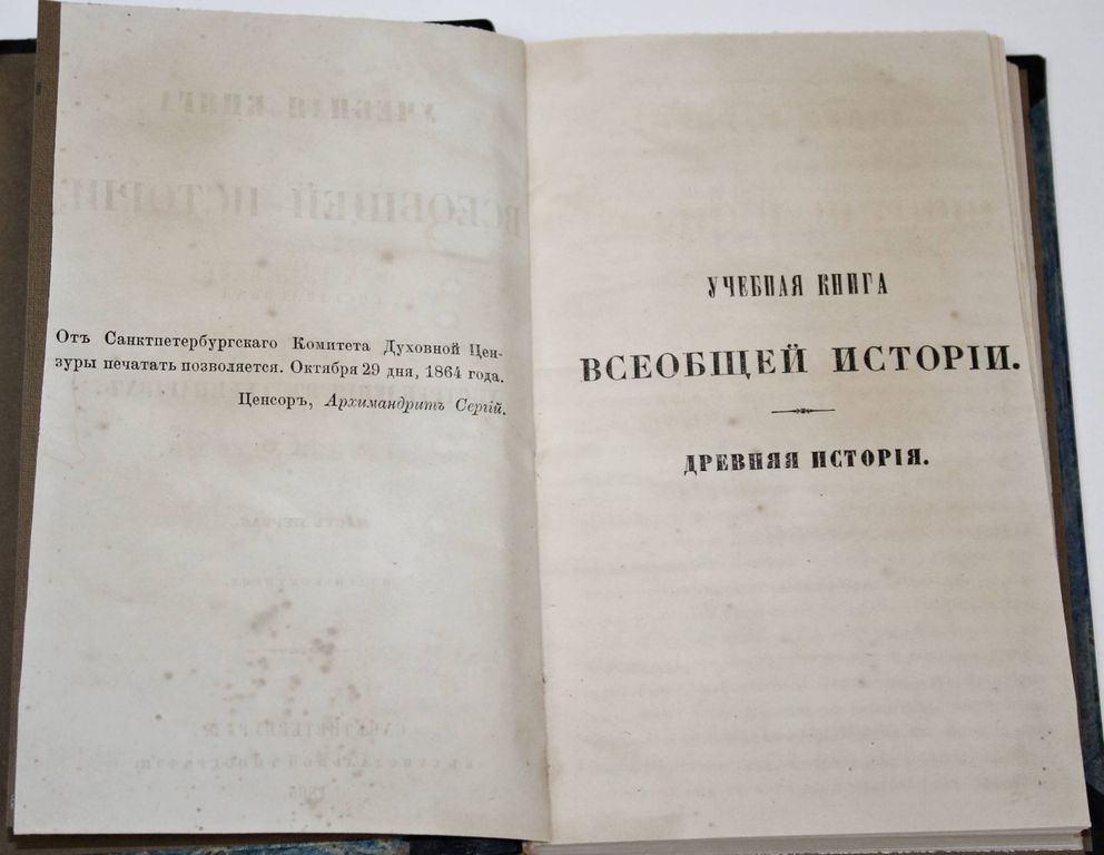 [Казанский П.С.]. Учебная книга всеобщей истории, составленная для употребления в семинариях. Часть I. Издание второе. СПб.: Синодальная тип., 1865. – X, 294 с. В современном полукожаном переплете. Уменьшенный формат, 17.5х12 см. Петр Сиимонович Казаанский (1819—1878) - русский богослов и историк; заслуженный профессор Московской духовной академии, секретарь Московского комитета духовной цензуры. В 1857 г. Синод поручил П.С.Казанскому составление учебника по всеобщей истории. 1-я часть (до эпохи св. равноап. Константина Великого), исправленная по указаниям митр. Филарета (Дроздова), по выходе из печати в 1863 г. была рекомендована в качестве учебника для семинарий. Хорошее состояние. Книжный блок сильно обрезан.