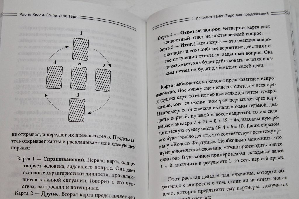Робин Келли. Египетское Таро. Предсказания судьбы. СПб.: Весь. 2017. 224с.,ил. Книга знакомит с одной из самых мистических колод — «Египетское Таро». В основе колоды лежит система традиционного Таро — 22 Старших аркана и 56 Младших. Уникальность карт заключается в их оформлении: атмосферные рисунки, передающие времена царствования фараонов, египетские мотивы, настенную живопись Древнего Египта. Представлена детальная трактовка карт, значение в раскладе. Описаны способы работы с картами, правила проведения сеансов гадания. Вы найдете более10 раскладов, с помощью которых возможно прояснить самые насущные вопросы — в любви, карьере, здоровье, духовных поисках. В конце книги вас ждет приятный сюрприз: цветная вклейка с изображениями Старших арканов. Вырежьте карты — и можно приступать к сеансу предсказания! Мягкий переплет. Обычный формат. Отличное состояние.