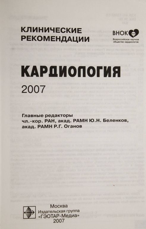 Клинические рекомендации. Кардиология. М.: Гэотар-Медиа 2007. 200 руб. В корзину Описание Описание Клинические рекомендации. Кардиология. М.: Гэотар-Медиа 2007. 623с.Мягкий переплет. Увеличенный формат. Хорошее состояние. Вас также может заинтересоватьВ корзинуПатологическая физиология сердечно- сосудистой системы. Том 2. Тбилиси. 1964.350 ₽ В корзину
