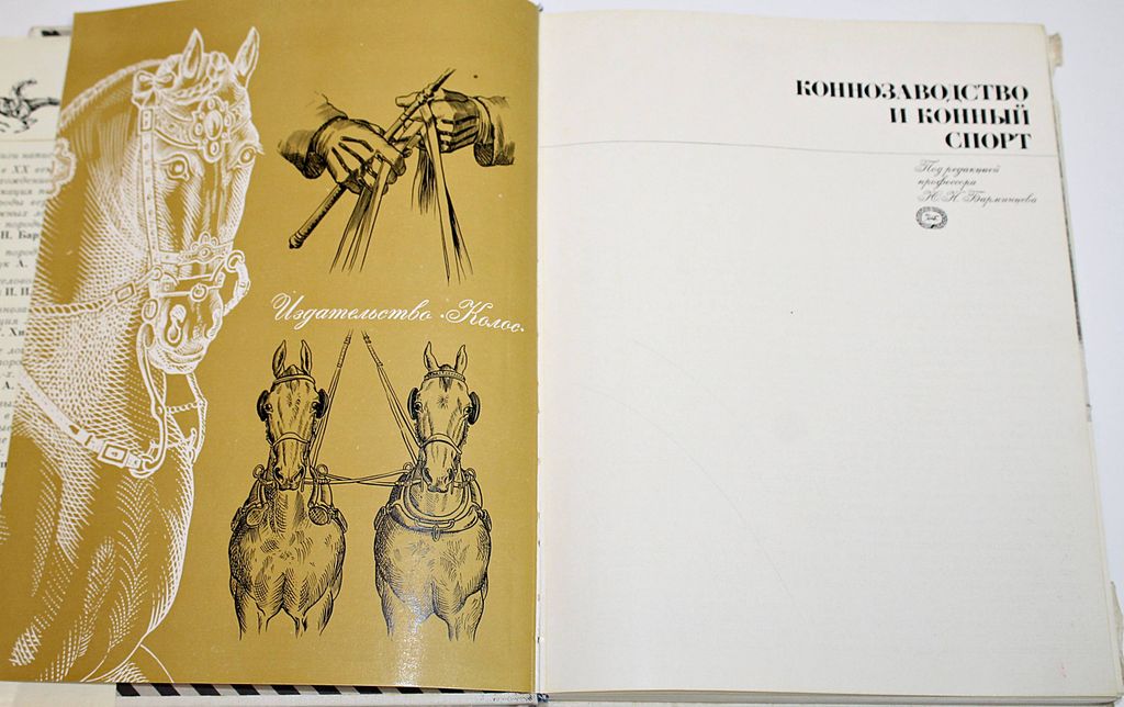Коннозаводство и конный спорт. Под ред. проф. Ю. К. Барминцева. М.: Колос. 1972г. 318с.,ил. Рассказывает о породах лошадей, истории их создания, генетике и селекции лошадей, выращивании и тренировке молодняка заводских пород. ОБ устройстве ипподромов, тренерском инвентаре, порядке розыгрыша призов, международных соревнованиях. Специальный раздел посвящен конному спорту. Содержит описание международных видов конного спорта и народных конноспортивных игр, в которых всадники соревнуются в силе, ловкости, умении управлять конем в сложной обстановке. Твердый переплет. Суперобложка. Энциклопедический формат. Хорошее состояние, супер. с надр.