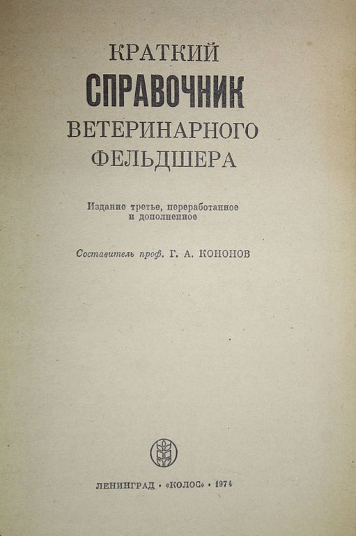 Кононов Г.А. Краткий справочник ветеринарного фельдшера. Л.: Колос. 1974г. 200 руб. В корзину Описание Описание Кононов Г.А. Краткий справочник ветеринарного фельдшера. Изд.3-е перераб.и доп. Л.: Колос. 1974г. 400с. Твердый переплет. Обычный формат. Уд. состояние. Вас также может заинтересоватьВ корзинуМихайлов В. Сенситометрия и фотоматериаловедение. М.: Госкинооиздат, 1938.650 ₽ В корзину
