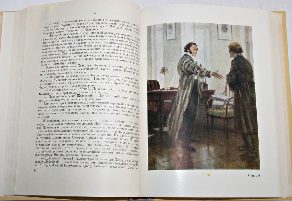 Кораблинов Владимир. Жизнь Кольцова. Иллюстрации художника О. Д. Коровина. М.: Молодая гвардия. 1956г. 309с.,ил. Книга повествует о жизни и творческом пути русского поэта Алексея Васильевича Кольцова (1809-1842), писавшего о деревенской жизни, радости труда и общении с природой. Его стихи близки по своей поэтике народным песням. Твердый переплет. Увеличенный формат. Хорошее состояние.