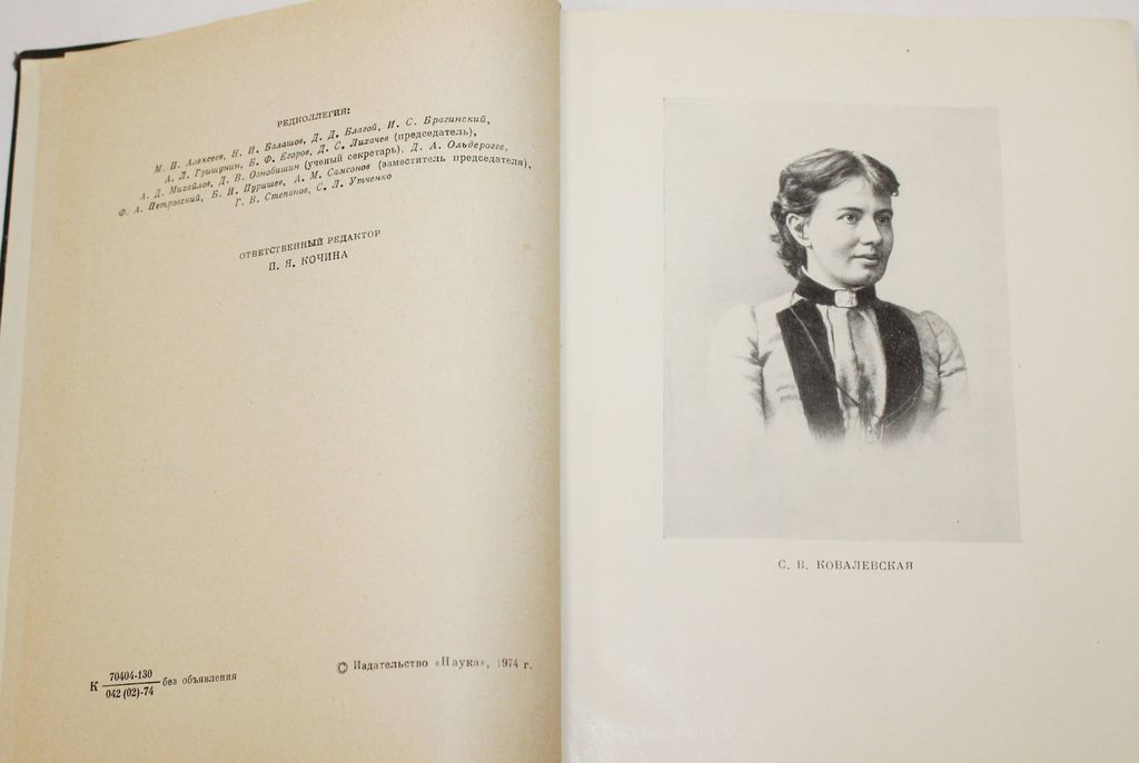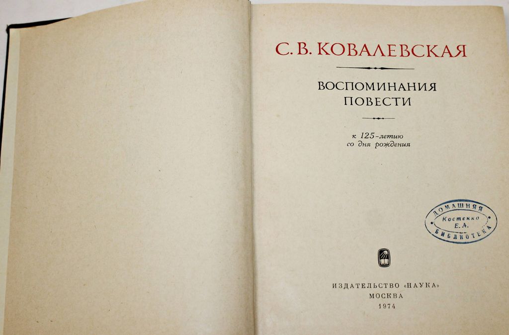 Ковалевская С.В. Воспоминания. Повести. Серия: Литературные памятники. М.: Наука. 1974г. 560с. Софья Васильевна Ковалевская (урожденная Корвин-Круковская) (3 (15) января 1850, Москва — 29 января (10 февраля) 1891, Стокгольм) — русский математик и механик, с 1889 года член-корреспондент Петербургской АН.Благодаря своим выдающимся математическим дарованиям, Ковалевская достигла вершин ученого поприща. Но натура живая и страстная, она не находила удовлетворения в одних только отвлеченных математических изысканиях и проявлениях официальной славы. Прежде всего женщина, она всегда жаждала интимной привязанности. В этом отношении, однако, судьба была мало благосклонна к ней и именно годы наибольшей славы ее, когда присуждение парижской премии женщине обратило на нее внимание всего света, были для нее годами глубокой душевной тоски и разбитых надежд на счастье. Ковалевская горячо относилась ко всему, что окружало ее, и при тонкой наблюдательности и вдумчивости обладала большой способностью к художественному воспроизведению виденного и перечувствованного. Твердый переплет. Увеличенный формат. Хорошее состояние, печать личной биб-ки.