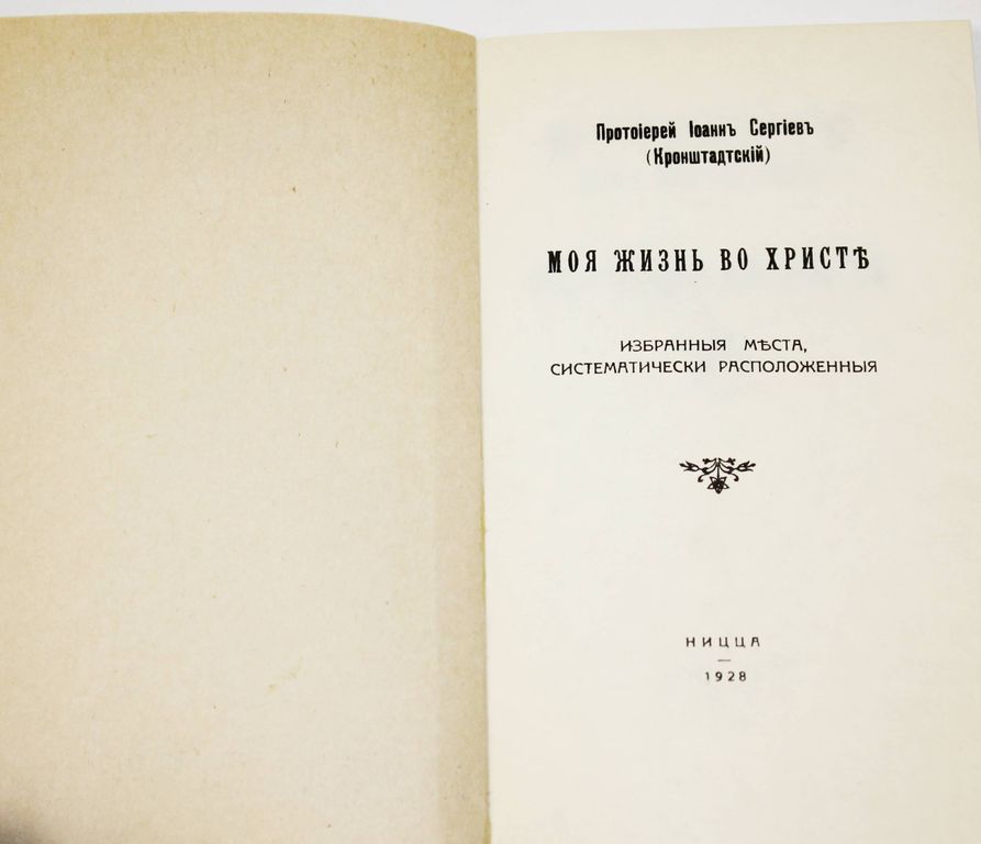 Святой Иоанн Кронштадтский. Моя жизнь во Христе. Репринтное издание 1928. М.: P.S. 1990г. 125 с. Святой праведный Иоанн Сергиев родился 18 октября 1829 г. в селе Суре Пинежского уезда Архангельской губернии. Не только отец его, но и большинство его предков на протяжении трех с половиной веков были священниками. По выходе из Петербургской Духовной Академии в 1855 г. он был рукоположен в иереи и назначен священником при Кронштадтском кафедральном соборе. Благотворитель, педагог, ревностный пастырь, служивший каждодневно литургию, о. Иоанн снискал своим даром прозорливости и исцеления всероссийское почитание. `Моя жизнь во Христе`, замечательный дневник созерцателя и молитвенника, вновь открывает `забытый путь опытного богопознания`. Это подлинный `возврат к духу святых отцов` (Г.Флоровский). О. Иоанн скончался в Кронштадте 20 декабря 1908 г. на 80-м году жизни. Поместный Собор Русской Православной Церкви 1990 г. канонизировал святого праведного Иоанна Кронштадтского. Память его совершается 20 декабря /2 января. Мягкий переплет. Обычный формат. Хорошее состояние.