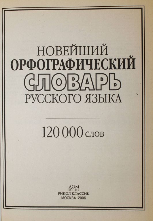 Куренкова Е. Новейший орфографический словарь русского языка. М.: Рипол классик. 2006. 380с. Отличительной чертой этого издания является наличие актуальной лексики, среди которой немало неологизмов, заимствованных и жаргонных слов, вошедших в наш язык в последние десятилетия.Словарь содержит краткие грамматические комментарии, которые помогут избежать ошибок в письменной и устной речи. Общее количество лексических единиц - около 120 000 слов. Эта книга — необходимый атрибут любого офиса и каждой современной семьи. Твердый переплет. Увеличенный формат. Очень хорошее состояние.
