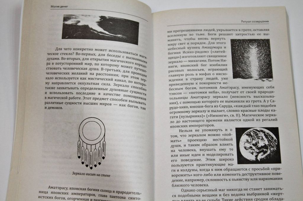 Матвеев С. Магия денег. М.: Амрита. 2014г. 304с. В этой книге рассказывается о работе с тонкой энергией денег посредством использования магических зеркал и пен-таклей, сакральных талисманов и символов. Благодаря этой книге вы познаете древние, проверенные временем психотехники успеха и искусство созидательной визуализации.Магическое зеркало — это тайная дверь, открывающая путь в бесконечные миры коллективного и индивидуального сознания и ведущая к духовному пробуждению и преображению. С его помощью можно моделировать свою собственную судьбу, в корне изменить жизнь, проникать в будущее, а также привлекать нужные космические вибрации, способствующие исполнению желаний. Пентакль является мощным генератором положительных вибраций, эффективным защитным средством и уникальным инструментом трансформации жизни, помогающим контролировать разнообразные энергетические потоки во Вселенной и причинном плане.Вовремя использованные пентакли и магические зеркала благоприятствуют психическому, эмоциональному, финансовому и биоэнергетическому развитию. Закрепляя за мистическими изображениями нужные функции, можно вылечить даже трудноизлечимые заболевания, помочь себе и окружающим людям избавиться от пагубного влияния демонических сил, неудач и деструктивных программ, сдерживающих духовный рост и препятствующих самореализации. Более того, используя магию изобилия, можно намного улучшить качество своей жизни, обрести гармонию, счастье и процветание.` Мягкий переплет. Обычный формат. Отличное состояние.