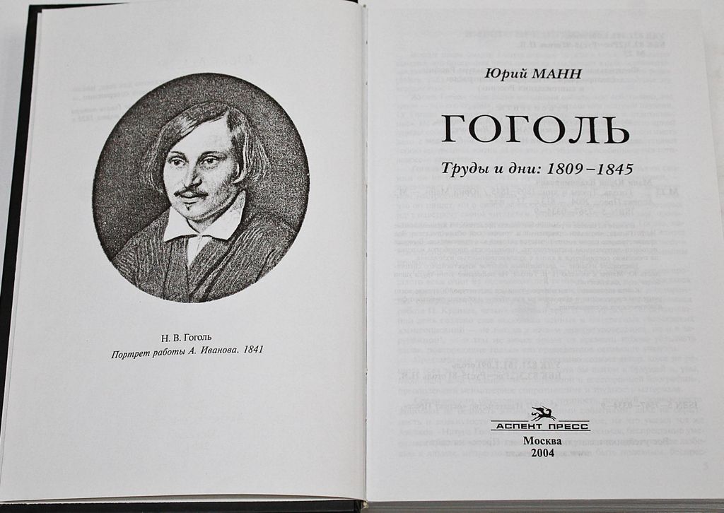Манн Юрий. Гоголь. Труды и дни: 1809-1845. М.: Аспект Пресс. 2004г. 813с.,32ил. В книге на основе огромного материала представлено жизнеописание Н.В. Гоголя, воссоздан прекрасный и трагический облик писателя, чье художественное слово воспринимается сегодня как пророческое. Высокая историко-литературная достоверность, тщательность проработки материала, счастливо соединяются в книге с художественностью изложения. Настоящее издание - драгоценный подарок известнейшего специалиста Ю. Манна к юбилею Н.В. Гоголя. На написание этого труда ушло более двух десятилетий. Твердый переплет. Обычный формат. Очень хорошее состояние.