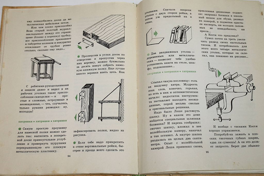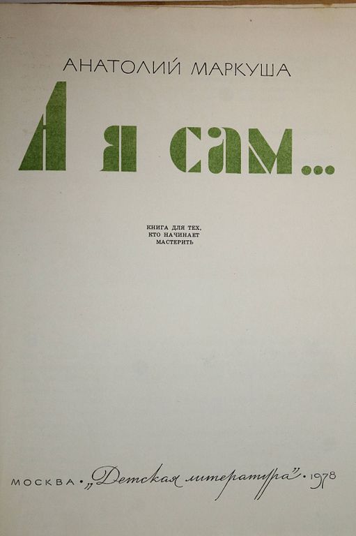 Маркуша А. А я сам…Книга для тех, кто начинает мастерить. М.: Детская литература. 1978г. 239с.,ил. Учит мальчиков пользоваться различными инструментами, мастерить простейшие вещи, помогает стать настоящим хозяином в доме и человеком `с руками`. Твердый переплет. Увеличенный формат. Уд. состояние, загрязн.