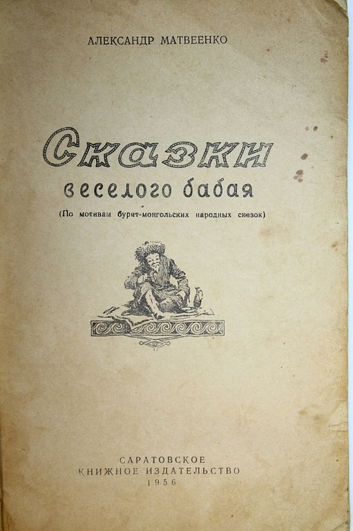 Матвеенко А. Сказки веселого бабая. (По мотивам бурят-монгольских народных сказок). Саратов: Саратовское книжное изд-во. 1956г. 250 руб. В корзину Описание Описание Матвеенко А. Сказки веселого бабая. (По мотивам бурят-монгольских народных сказок). Саратов: Саратовское книжное изд-во. 1956г. 86с. Мягкий переплет. Обычный формат. Уд. состояние. Вас также может заинтересоватьВ корзинуУпмале Вия. Бригантины и капитаны. М.: Детская литература. 1980г.250 ₽ В корзинуВ корзинуХолендро Д. Летающий пудель. Рассказы. М.: Детская литература. 1965 г.250 ₽ В корзину