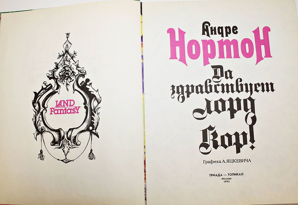 Нортон А. Да здравствует лорд Кор! Для детей. Графика А.Яцкевича. М.: Триада-Топикал. 1993г. 111с. О путешествиях во времени и пространстве знаменитого Андре Нортона. Двухстраничные многоцветные иллюстрации в духе фантастических мультфильмов. Твердый переплет. Энциклопедический формат. Хорошее состояние, подклеен задний форзац.