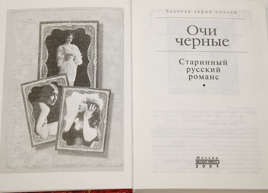 Очи черные. Старинный русский романс. М.: Эксмо- Пресс. 2001. 432с.,ил. Русский романс – незатейливый и трогательный, вобрал в себя всю гамму человеческих чувств. Русский романс вечен, как вечна любящая и страдающая человеческая душа. Твердый переплет. Обычный формат. Отличное состояние.