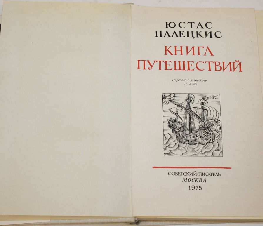 Юстас Палецкис. Книга путешествий. Художник книги П.Лантух. М.: Советский писатель. 1975г. 432с. Юстас Палецкис - старейший литовский поэт и прозаик, автор многих книг, писатель, который стоял у истоков литовской советской журналистики и многое сделал для ее развития. ``Книга путешествий`` - это рассказ о близких и далеких странах, в которых приходилось бывать Ю. Палецкису, как одному из видных государственных деятелей нашей страны. Это глубокие раздумья о судьбах человечества, это целая панорама мира пятидесятых и шестидесятых годов. Твердый переплет. Суперобложка. Обычный формат. Хорошее состояние, суперобл. с надрывами.