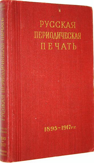 Русская периодическая печать 1895-1917 гг. Справочник. Авторы составители М.С.Черепанов, Е.М.Фингерит. М.: Госполитиздат. 1957. 352с. Наиболее полный советский библиографический справочник по русской периодической печати XVIII - начала XX вв. Твердый переплет. Обычный формат. Хорошее состояние.