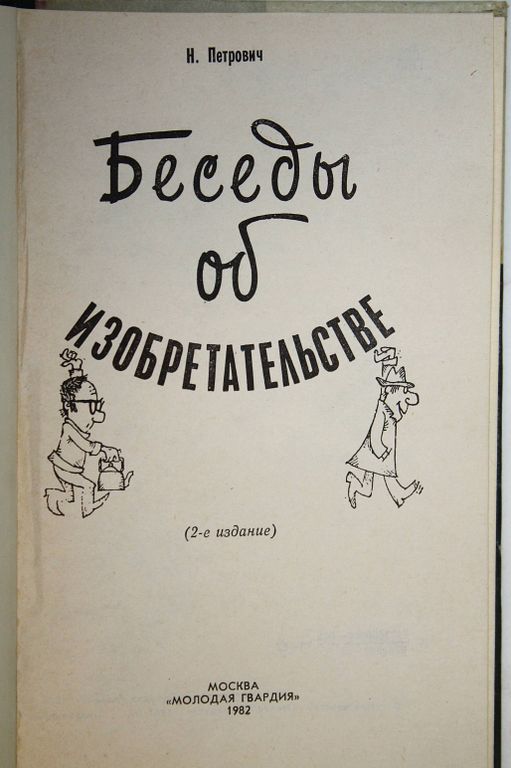 Петрович Н. Беседы об изобретательстве. Серия: Эврика. М.: Молодая гвардия. 1982г. 189 с.,ил. Тысячи и тысячи людей на планете ломают головы над совершенствованием существующих устройств или созданием новых для облегчения труда и улучшения быта человека. Об изобретателях и изобретательстве в нашей стране, о большом его значении, о научно-техническом творчестве молодежи, о любопытных отечественных и зарубежных находках рассказывает изобретатель, доктор технических наук Н. Петрович. Читатель найдет в книге много политических советов: выбор темы, методика поиска новых решений, оценка новизны, составление описания и формулы изобретения. Твердый переплет. Обычный формат. Хорошее состояние.